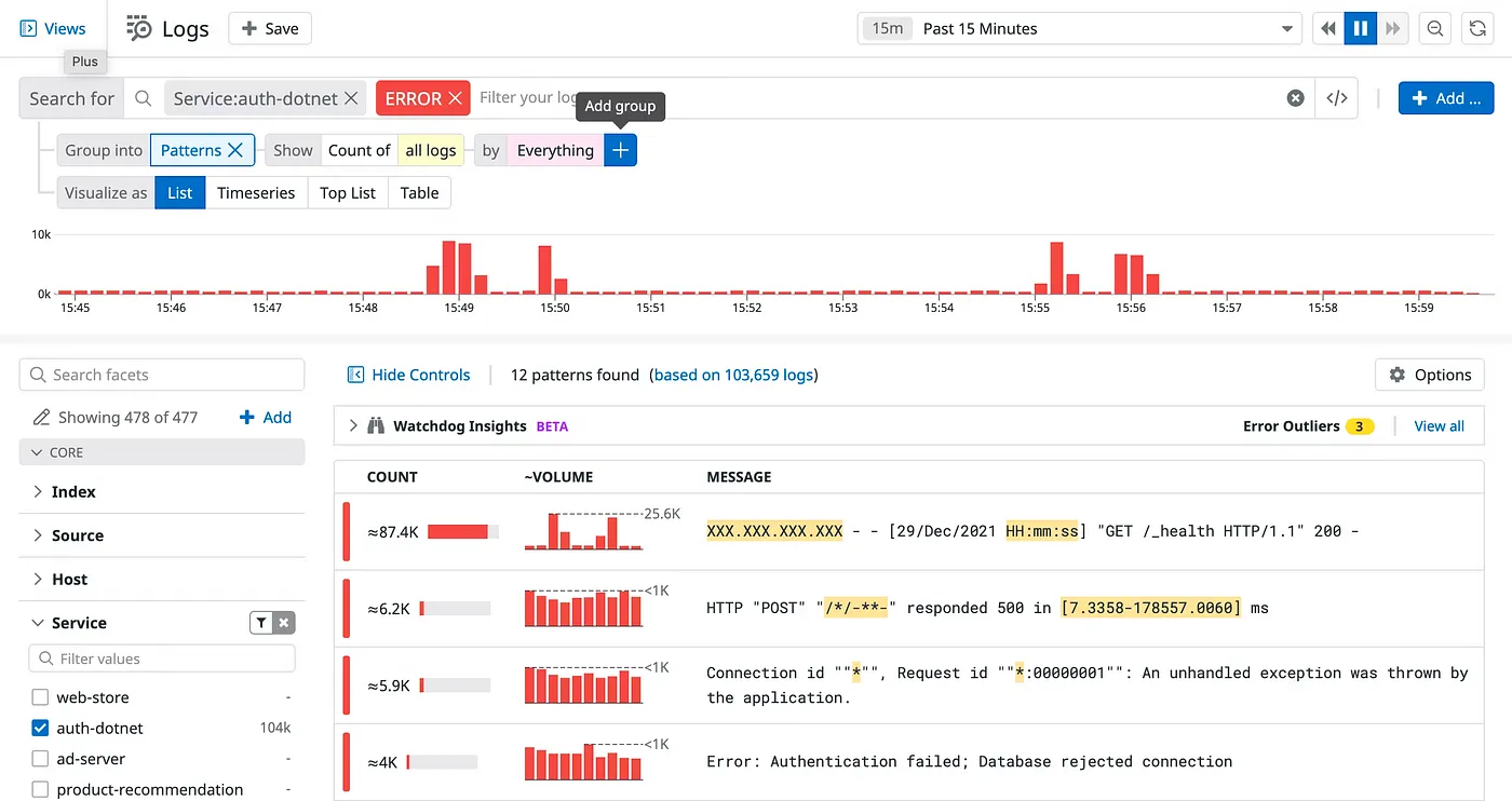 The Patterns feature is often overlooked. Leverage it to pinpoint unnecessary or anomalous log patterns. To optimize costs, prioritize addressing high-volume logs that provide little value.